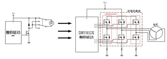 圖1:從有刷拓撲轉換到無刷拓撲意味著FET數量出現了6倍倍增