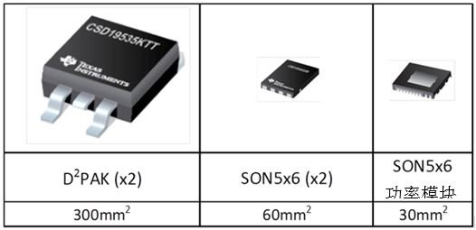 TI最近通過將兩個FET縱向集成到單一封裝中,將這一趨勢歸結為邏輯結論,在一個SON 5mm×6mm的功率模組中提供整個半橋。40V CSD88584Q5DC和 60V CSD88599Q5DC採用與德州儀器低電壓功率模組相同的堆疊裸片技術,用於高頻電源應用,同時採用了優化的矽片,以減少大電流電機驅動應用的傳導損耗。除減小在PCB上並排兩個FET所帶來的寄生電感外,縱向集成兩個FET可在同一封裝中容納更多的矽,從而實現比分立QFN器件更高的功率密度。