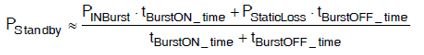 在突發開啟期間,PFC級的效率大約等於PFC轉換器在11%負載下的效率。在突發關閉期間,UCC28056的電流消耗降至125μA。在沒有轉換動作發生的突發關閉期間的功率損耗主要由PFC級內的靜態功率損耗決定。等式1提供了待機功耗性能的近似值
