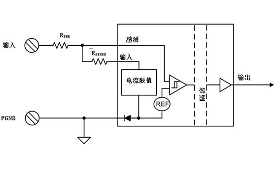 隔離數位輸入充當提供從感測器輸入或其他輸入類型到主機控制器介面的邏輯輸出的電流隔離的基本功能。與數位隔離器不同,隔離數位輸入的輸入級(如圖2所示)包括用戶設置輸入閾值和集成電流限制,允許9V至60V範圍內的輸入電壓轉換為邏輯輸出。在最簡單的形式中,隔離數字輸入用作隔離比較器,具有一些易於設計的附加功能。