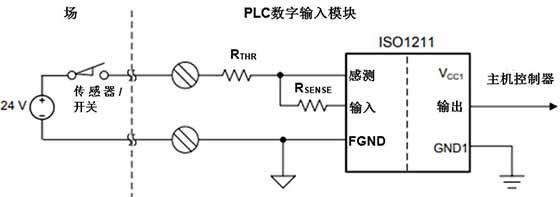 隔離數位輸入僅需要次級側電源。在ISO1211(圖4)和ISO1212隔離數字輸入中,場側由輸入供電,因此無需場側電源。與其他分立解決方案相比,此方案更易於前端設計。