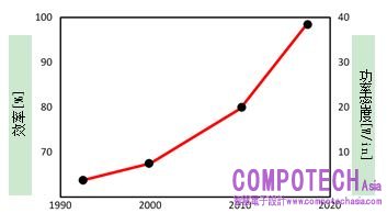 自20世紀90年代初以來,在個人電腦和電子、電信和半導體技術進步的推動下,提高效率的需求大大加快。如圖2所示,功率解決方案效率的提高促進了功率密度的不斷進步。