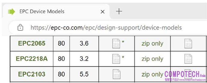 圖2. 可供下載的供應商GaN模型庫清單示例