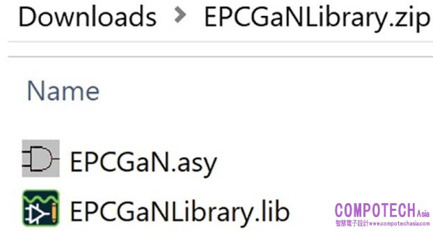 如果設計人員希望評估其他模型,操作起來也相當簡單,並且LTspice檔仍然像下載時一樣可移植,方便其他團隊成員進行評估。如果放置了其他元件,過程也一樣。首先,需要一個模型庫檔(由供應商提供)來擷取模型資料。為了便於參考,電源產品專題頁面上提供的所有示例電路都包含了此網址。圖2 所示為EPC2218A供應商提供的元件模型清單示例。為了展示該過程,我們選擇EPC2218A元件作為示例。大多數供應商提供的下載內容通常包含多個檔案。此外還有符號檔和示例檔。我們關注的是庫檔(圖3)。如果直接打開庫檔,則會打開預設庫安裝程式,這不是推薦的做法。我們的目標是不必向本地庫中增加更多元件符號和元件,進而無需進行管理。因此,我們將直接使用庫檔中包含的資料。利用任何基本文字編輯器工具(比如記事本)打開庫檔,以獲得其中的資料而不執行庫安裝。
