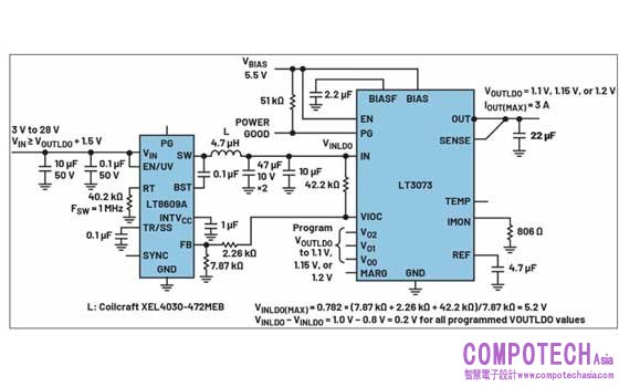 圖1:此VIOC系統為LDO維持一致的輸入輸出電壓差