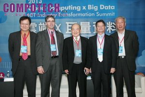 圖說:資策會雲端所今(13)日舉辦「雲端×巨量資料 ICT產業轉型高峰論壇」,探討台灣ICT產業轉型升級的挑戰,邀請(左起)資策會王可言副執行長、IBM Watson研發中心資深經理Jim Laredo、資策會前執行長暨神通公司前董事長果芸先生、經濟部技術處詹文鑫科技專家、雲端運算應用與產業發展推動辦公室劉龍龍主任等重量級貴賓與談。