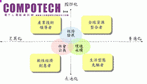 財團法人資訊工業策進會(資策會)執行長吳瑞北今(24)日於致詞時特別強調,從過去製造業掛帥的二十世紀,現已轉變成雲端運算、數位匯流、行動影音、3D以及Web 3.0的新世代。綜觀全球產業佈局的趨勢,吳執行長更進一步點出,依資策會產業情報所MIC《2025臺灣產業新願景》資料顯示,台灣產業應從以往注重企業彈性、且個性化的發展,朝向打團體仗、重視更具規劃組織執行紀律之方向發展;同時在普遍化、國際化、差異化及在地化等四大趨勢的發展下,努力朝「全球資源整合者」、「產業技術領導者」、「軟性經濟創意者」及「生活型態先驅者」之定位邁進,創造具統籌調度全球能力的產業,提升整體產業附加價值,以利迎接2025年下一世代產業發展之嶄新挑戰。