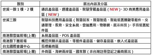據了解,包括ARM、日月光集團(ASE Group)、Broadcom、群光電子(Chicony)、訊舟科技(Edimax)、聯發科技(MediaTek)、瑞昱(Realtek)等物聯網大廠,將在台北國際會議中心(TICC)展出各種物聯網應用,包括智慧手錶、穿戴裝置、智慧衣服、聯網GPS、智慧監控、運動手錶、居家照護、智慧家居設備等創意產品,並且將展示各種開發套件(Developer Kit) 與相關系統級封裝平台解決方案,讓廠商針對特定應用,透過軟硬整合方式,直接開發產品。