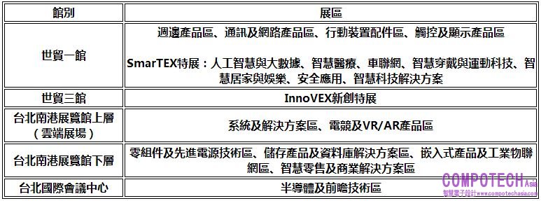 TCA指出,由於物聯網技術日漸普及,垂直市場(Vertical Market)跨界解決方案已成為近年來品牌商、通路商與系統整合商採購主流,因此主辦單位以應用領域分區方式,規劃SmarTEX智慧聯網特展,涵蓋人工智慧(AI)與大數據、車聯網、安全應用、智慧醫療、智慧居家與娛樂、智慧穿戴與運動科技、智慧科技解決方案等領域,以提供垂直市場跨界解決方案一站式B2B採購服務。