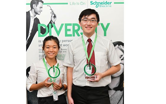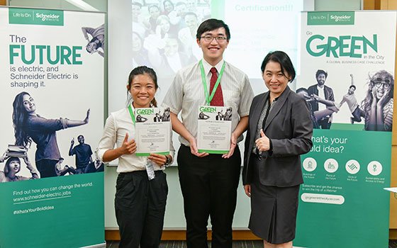 今年施耐德電機Schneider Electric「Go Green in the City」全球綠能創意競賽,台灣所有入圍決賽的隊伍成員都具有商管及理工背景,得以從更加全面的角度發想創意商業提案,內容十分精彩,包括:成功大學機械工程學系傅韋翔與何楨薈同學組成的「Infinite」應用機器學習技術來預測切割機的生命週期;政治大學企業管理學系黃品誠同學與淡江大學管理科學系陳智如同學組成的「Green Go」規劃了一套即使電力缺乏地區也負擔得起的能源供應鏈商業模型;中山大學機械與機電工程學系徐尚仁與陳卉芯同學組成的「MIB」則提出智慧建築空調解決方案,應用人工智慧並結合各式監控、感測器,提高人體舒適度也同時降低能源消耗,達到環境友善。
