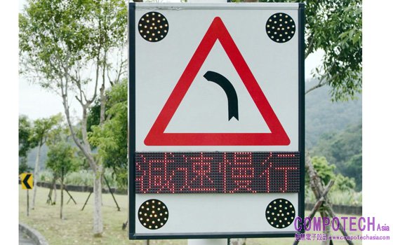 圖說:資策會系統所聯手台灣地區車聯網產業協會、世曦等單位,共同研發智慧機車安全警示系統,車輛於彎道前,前方號標即可警示行車速度過快(右)。