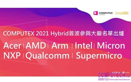 外貿協會表示,截至目前,Acer、AMD、Arm、Intel、Micron、NXP、Qualcomm和Supermicro等全球科技指標大廠皆確認參與COMPUTEX 2021 Hybrid,透過虛實整合的模式,吹響新布局號角,與COMPUTEX一齊引領產業前行。新創方面,臺灣最新型加速器(TAcc+)與荷蘭等國際團隊,亦將帶領優質新創團隊參與展會,為新創開啟鏈結全球市場契機,也為產業注入創新動能。