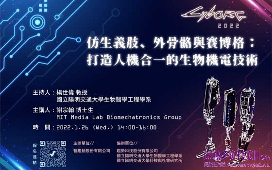 2022年1月17日--隨著科技與人工智慧演進,人類與機器結合的賽博格(Cyborg)仿生科技研究,將為全世界下一階段的智慧醫療發展帶來革命性變化!由智趨動股份有限公司主辦、全球網路資安解決方案領導廠商趨勢科技 (東京證券交易所股票代碼:4704)與陽明交通大學共同協辦的Cyborg賽博格 2022「仿生義肢、外骨骼與賽博格:打造人機合一的生物機電技術」線上講座活動,將於1月26日下午14:00至16:00透過線上形式舉辦,邀請師承MIT美國麻省理工學院媒體實驗室生物機械組領導人修·赫 (Hugh Herr) 教授的 MIT生物機電組博士生謝宗翰,分享最新仿生腳踝義肢設計與神經肌肉的模擬與應用研究,帶您一窺世界頂尖人才匯聚的搖籃如何孕育出仿生科技新未來,期盼能如投石擊水激起漣漪,吸引更多有志於跨越科技與醫療藩籬的產、學、業界人士,齊心投入推動台灣智慧醫護領域發展,講座現正免費開放報名,歡迎有興趣的大眾自由參加。