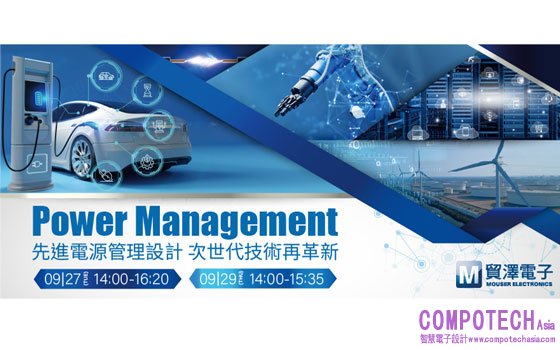 2022年9月26日--專注於新產品導入、提供種類最齊全半導體與電子元件的授權代理商Mouser Electronics ( 貿澤電子 ),將於9月27日及9月29的下午兩點,舉辦「先進電源管理設計 次世代技術再革新」的線上研討會。 本次活動將重點圍繞電源管理技術進行展開,特別邀請到來自Analog Devices, onsemi, Toshiba Electronics, Vicor等國際原廠的資深技術專家,以及國立臺灣科技大學的教授,為大家帶來高效率的電源方案和創新設計, 幫助工程師更加了解電源管理的知識與產業脈動。