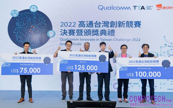 2022年11月19日--高通技術公司今日揭曉第四屆「高通台灣創新競賽」(Qualcomm Innovate in Taiwan Challenge,QITC)優勝名單。第一名由APrevent Medical(宇康生科)贏得,榮獲獎金12萬5千美元;Vossic Technology(沃司科技)與Moldintel(智穎智能)分列第二名與第三名,各獲得獎金10萬美元、7萬5千美元。除了優勝團隊獲得獎金外,高通未來將持續協助所有入圍團隊鏈結國際市場。