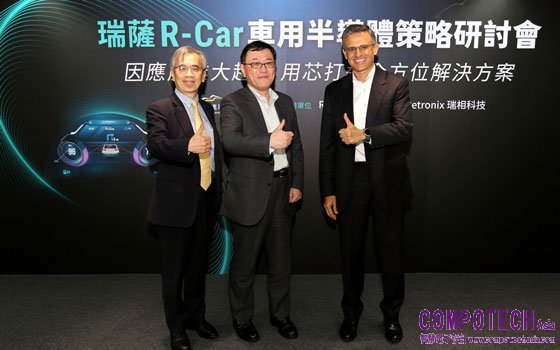 瑞薩R-Car車用半導體策略研討會講師合影,由左至右依序為:台灣先進車用技術發展協會(TADA)秘書長沈舉三、瑞薩車用解決方案事業部高級副總裁暨總經理片岡健(Takeshi Kataoka)、瑞薩亞太地區策略車用事業部副總裁羅喬拉(Ro Chawla)。