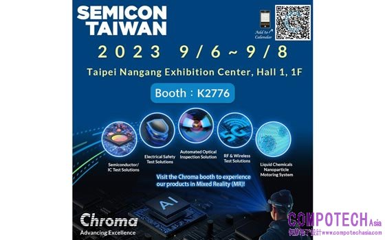 SEMICON Taiwan 2023 (9月6-8 日),致茂電子將於台北南港展覽館一館1F (攤位號K2776)展出多元的測試解決方案,並於半導體先進檢測與計量國際論壇,探討半導體先進封裝中新型態的計量解決方案,我們誠摯的邀請您一同體驗量測新趨勢,期待在此年度盛會中與您見面。
