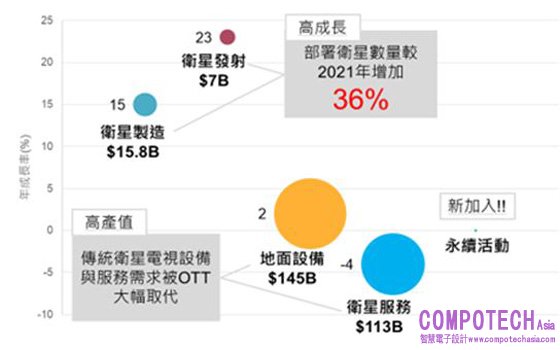 IEKView:2022年全球衛星產值約2,810億美元,低軌巨型星系發展帶動衛星製造與發射成長,未來將關注D2D、多軌衛星整合、衛星中大型化及太空永續等產業焦點。