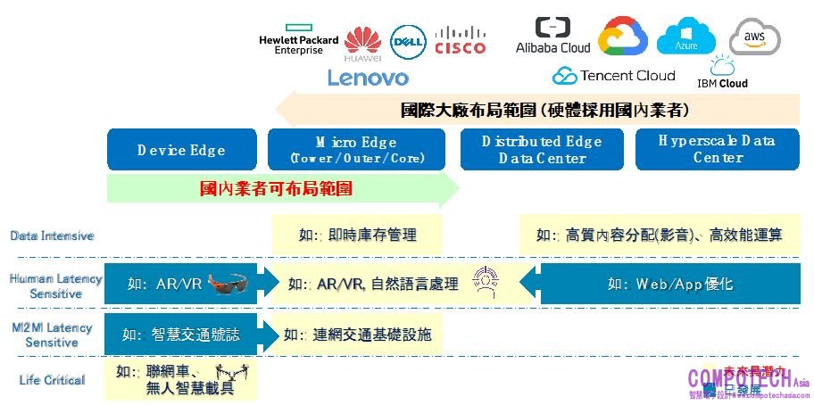 隨著服務由雲端推向邊緣,面對不同邊緣層次所需的產品,國際大廠採用通用型產品,亦是將既有設備結合新一代AI運算效能的模式切入,強調可支援高速運算、低功耗、智慧監控能耗等,依客戶需求進行客製化的軟硬體設計,這也是臺灣業者布局的重點。有別於過往硬體代工思維,臺灣業者將有機會接觸多元的各應用領域需求,促使自身發展細緻且客製化之軟體服務、系統整合與驗證測試能力。