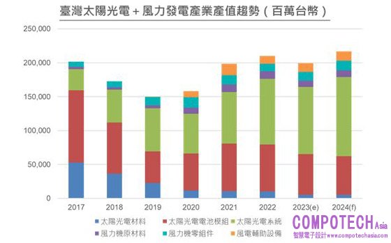 IEKView:淨零風潮遇到通膨風浪,預估2023年台灣太陽光電與風力發電產業產值下滑5.0%,2024年反彈8.6%,返回2,000億元新台幣大關。