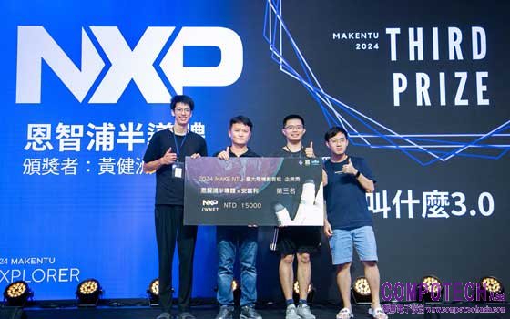 2024年5月6日--全球領先半導體公司恩智浦半導體(NXP Semiconductors N.V.; NASDAQ:NXPI)與全球領先的技術分銷商和解決方案提供商安富利今年第三度攜手協辦由國立臺灣大學電機系主辦的「2024台大電機創客松MakeNTU」競賽,今年以ExplorEr為主題,吸引來自臺灣大學、清華大學、陽明交通大學、台灣科技大學、中山大學、高雄科技大學、中央大學等173位青年學子參與,總參賽隊伍達43隊,於5月4日至5日在松山文創園區多功能展演廳舉行連續24小時不間斷競賽,最後由來自臺灣大學的「ExponEntial」團隊、「櫃人多忘事─我的OO勒?」團隊、以及「所以我們要叫什麼3.0」團隊,分別榮獲2024台大電機創客松MakeNTU競賽恩智浦企業獎前三名。其中「ExponEntial」團隊亦榮獲大會「最佳人氣獎」。