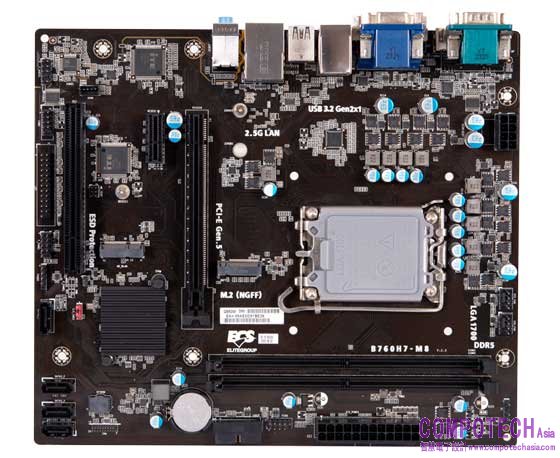 精英電腦 Black Series主機板將於COMPUTEX 2024重新亮相,首發新品 B760H7-M8 Black Series是一款Micro ATX Intel B760晶片組主機板,支援Intel LGA1700 CPU,包括Alder Lake-S、Raptor Lake-S和Raptor Lake-S Refresh處理器。它的兩個DIMM插槽中可接受DDR5 5600或DDR4 SDRAM 記憶體,同時可支援Gen5 PCIEx16擴充槽、M.2 PCIE Gen4 x4 2260/2280 SSD、四個SATA3.0 6Gb/s儲存硬碟、M.2 Wifi/藍牙和2.5GbE乙太網路埠,使用者無論在輕遊戲、日常使用都能輕鬆駕馭。