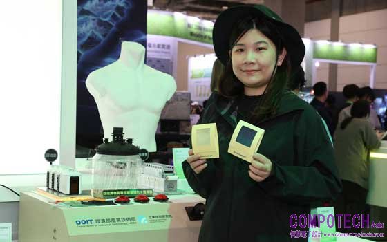 工研院展出的「再生紡織薄膜轉化高機能材料」是與興采集團共同推動「複合紡織品回收再製低碳循環防水透濕膜(Circu-Texfilm)」技術開發,突破傳統紡織品僅能回收單一材質的限制,可將複合廢棄紡織品透過化學解聚與再聚製程,轉化為具「防水、透濕」機能的聚氨酯薄膜材料,無需拆解或脫色,即可再製成不同規格之防水透濕布料,並可廣泛應用於機能服裝、鞋材及戶外裝備等產品領域。目前興采集團正積極推動該循環材料技術之產業化與市場應用,並逐步導入機能紡織材料產品體系,協助紡織產業提升複合紡織品回收利用率,推動紡織產業朝低碳製造與循環經濟發展。