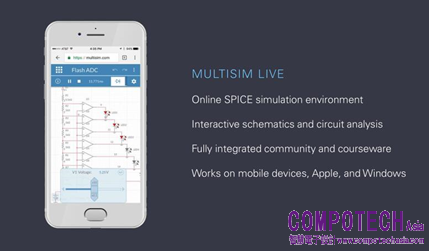 配合遠距教學的實現,NIWEEK也重磅推出業界遠距教學模式的典範Multisim Live,可透過移動端、App、Windows端多種模式登錄操作,是一個完全基於瀏覽器的電路模擬軟體,幫助學生隨時隨地進行電路模擬,同時具備線上分享,形成互動社群,結合強大的線上資源庫TeachingResources Portal,讓廣大大學學生真正感受到來自NI的「科研路上,多個朋友多條路」的親切感~