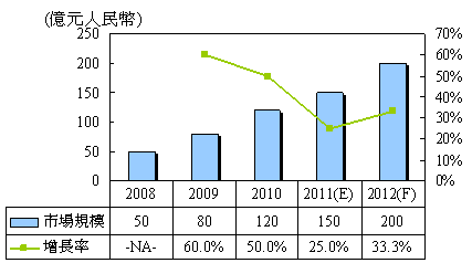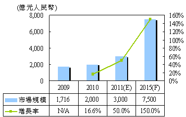 至2012年,產業銷售收入超過1,500億元人民幣;至2015年,產業銷售收入超過4,000億元人民幣 |