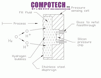 作為替代金屬薄膜的感測技術,多晶矽技術已經有了20年的歷史。感測元件設計成一個小杯形狀,由硬化不銹鋼如17-4PH以及通過化學氣相沉積過程的多晶矽應變片。感測元件和壓力介面燒焊成一體,作為最終的應用。這種設計會遭受氫脆化,就是氫原子通過敏感膜片的分子晶體結構,如”白蟻”一樣的遷徙,這樣就降低了材料的抗拉性能及造成失效。氫脆化會在所有溫度範圍內產生,然而當溫度由