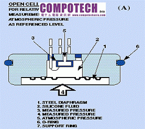 充油矽芯MEMS技術已經發展超過25年,並且被廣泛地用於低壓(15Psi)至中壓(3000Psi)的工業上。MEMS敏感元件是在一個N型矽敏感膜片上,加上P型擴散矽應變敏感電阻,使用薄金屬波狀膜片,使矽油和介質是隔離的。如圖4(a) 所示,金屬膜片厚度的變化量是從