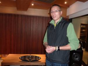 圖說:在皇佳國際打造的試聽室中,楊牧華實機展示了Zeppelin Air具有的AirPlay功能, 完美播放出歌手與歌曲的完美音質。