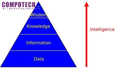 這張圖包含了四個部份,分別是資料(Data)、資訊(Information)、知識(Knowledge)以及智慧(Wisdom)。當一個M2M的系統建立起來後,整個系統要能夠收集必要的資料,從再資料中整理出有用的資訊,並將累積的資訊消化、歸納後建立一套專家系統。之後這套專家系統就可以對應各種環境做出不同的判斷。