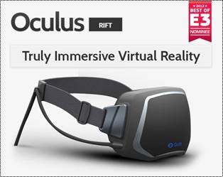 美商Oculus VR針對遊戲玩家的HMD – Oculus Rift,這個商品受到注目的一大要因,就是從Kickstarter募集群眾資金,有約9500人出資達250萬美金(目標值的10倍)。這個東西有點虛擬實境VR,讓重度玩家有身臨其境的爽度。它的技術規格如下: