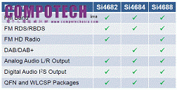 Si468x數位收音機接收器現已量產,並可提供樣品,支援