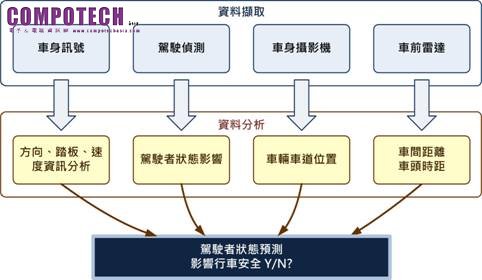 在諸多車輛應用技術如雨後春筍的出現之中,大致上可以分為駕駛狀態分析、車輛行車死角的消除,以及車身狀態監控幾個技術部份。科技的進步帶來了多樣化的媒體服務,卻同時帶給了駕駛者在行車時容易分心疏忽的後遺症;而軟硬體的成本大幅降低,則讓各式感測器可以廣泛的應用在市售車上。如何讓科技這把兩面刃成為行車上的助力,是眾家廠商持續努力的目標。
