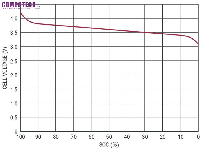 HEV 或 EV 中電池的預計使用期限是 10~15 年,而當電池失去其原始容量的 80% 時即被認為處於其壽命末期。透過限制工作電荷狀態 (不允許電池滿充電或完全放電),可最大限度地增加電池的使用壽命和可靠性。典型的電池組工作於一個受限的範圍內,例如:20% SOC 至 80% SOC,其中 SOC 表示“電荷狀態”。這些 SOC 限值可根據電池的老化和工作情況 (比如:高溫環境) 進行調節。由於採用了此類限值,故電池組不會以滿容量地使用。例如:以 20% SOC 至 80% SOC 來運作電池組將把可用 SOC 限制在這 60% 範圍。BMS 所面臨的挑戰是使每顆電池盡可能接近限值運作,而不要超過限值。鋰電池在其工作範圍內表現出平坦的放電曲線,使得上述挑戰的難度進一步加大。因此,在整個工作範圍內電池電壓的變化非常之小,作為 SOC 計算的一部分,電池監視器必須進行非常準確的測量。