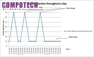 這裡顯示的餐前追加劑量時間僅為例子,追加與基礎劑量的時間間隔因人而異,且應遵循醫生的建議。這意謂胰島素幫浦使用者必須能夠自行修改速效型胰島素的輸注曲線,按實際狀況設定追加劑量。使用者可嘗試不同的追加輸注劑量,藉以判斷劑量輸注曲線與那些特定食物最適合,便可藉由自己的需求調整追加劑量來改善對血糖的控制。