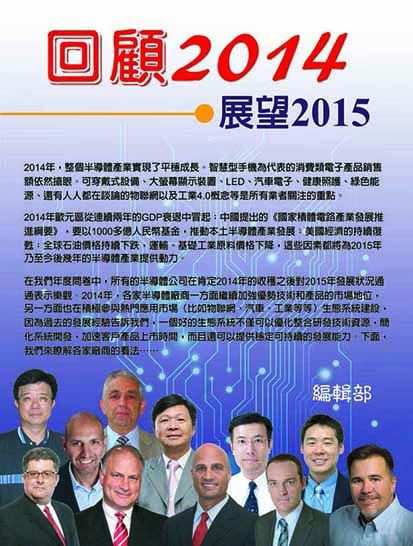 2014年,整個半導體產業實現了平穩成長。智慧型手機為代表的消費類電子產品銷售額依然搶眼。大螢幕顯示裝置、LED、汽車電子、健康照護、綠色能源、還有人人都在談論的物聯網以及工業4.0概念等是所有業者關注的重點。