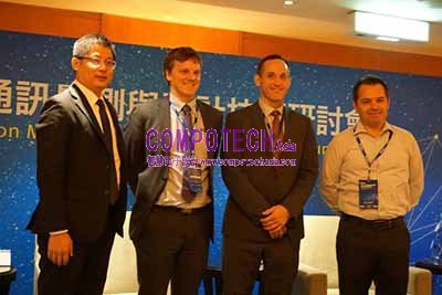 照片人物:(左起) NI 台灣總經理林沛彥、首席產品行銷經理 David A. Hall、RF及無線測試行銷總監 Jason White、AWR 產品經理 Gent Paparisto
