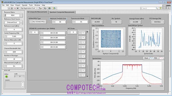 該套件符合更窄子載波間隔、1024 QAM,以及多使用者「正交分頻多工存取」(OFDMA) 規範。結合 NI 的 RF 向量訊號收發器 (VST),使用者可產生並分析多種波形,將 GPS 和 Glonass 衛星訊號、藍芽、AM/ FM,以及 802.11a/ b/ g/ n/ j/ p/ ac/ ah/ af 等多元通訊協定一網打盡,並全線支援 1X1 SISO (單通道輸入和輸出) 到 8 X 8 MIMO。即使 802.11 實體層規格大幅更動,亦可透過軟體更新跟進最新版測試標準,當然沒漏掉知名的 LabVIEW 系統設計軟體範例程式碼,協助工程師以研發等級的高速和精確度,迅速執行自動化 WLAN 量測作業。