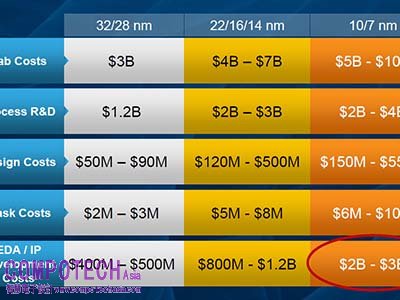 圖1:半導體產業在奈米製程的投資概況 (單位:美元)