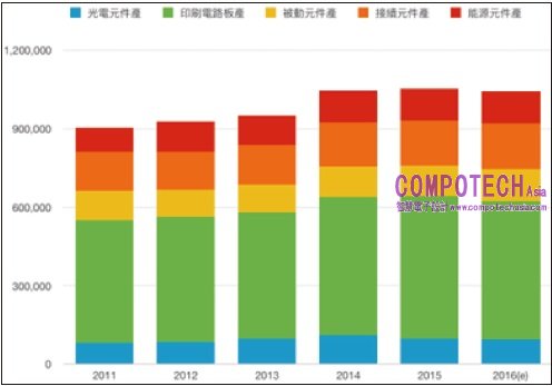 圖1: 台灣零組件產業趨勢 資料來源:工研院IEK、經濟部ITIS 計畫(2016/11)