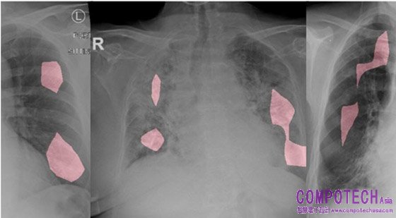 用GenSynth識別來自不同COVID-19病例的CXR圖像及其相關的關鍵因素(紅色部分) (圖片來源,arm.com)