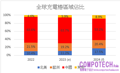 圖1:全球充電樁區域分佈 資料來源:工研院IEK Consulting (2023/5),筆者製圖