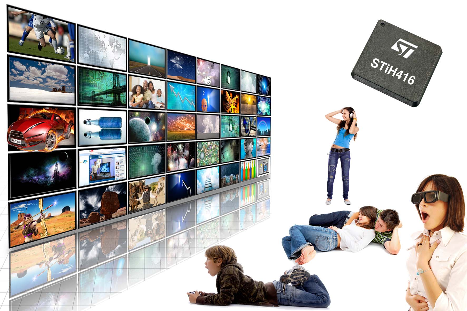 2012年2月1日-橫跨多重電子應用領域、全球領先的半導體供應商意法半導體(STMicroelectronics,簡稱ST;紐約証券交易所代碼︰STM)展示新一代連網家庭平台。意法半導體的STiH416是迄今世界上性能最強的連網家庭SoC(於2011年9月率先發佈,代號Orly),採用28奈米製程,擁有極其出色的運算性能,為用戶帶來真正令人震撼的家庭娛樂體驗。STiH416整合了先進的寬頻網路和廣播電視接收功能,並具有出色的密集運算任務處理性能,其中包括雙核應用處理器和專用繪圖引擎,讓消費者能夠輕鬆地獲取大量的高價值內容和網路娛樂以及個人數據。新產品可支援真正的多螢幕體驗,具有實時轉碼功能,能夠無縫的且不間斷地傳輸數據製至智慧型手機、平板電腦、大尺寸電視等多種消費性電子產品,以最小的功耗實現優異的性能。