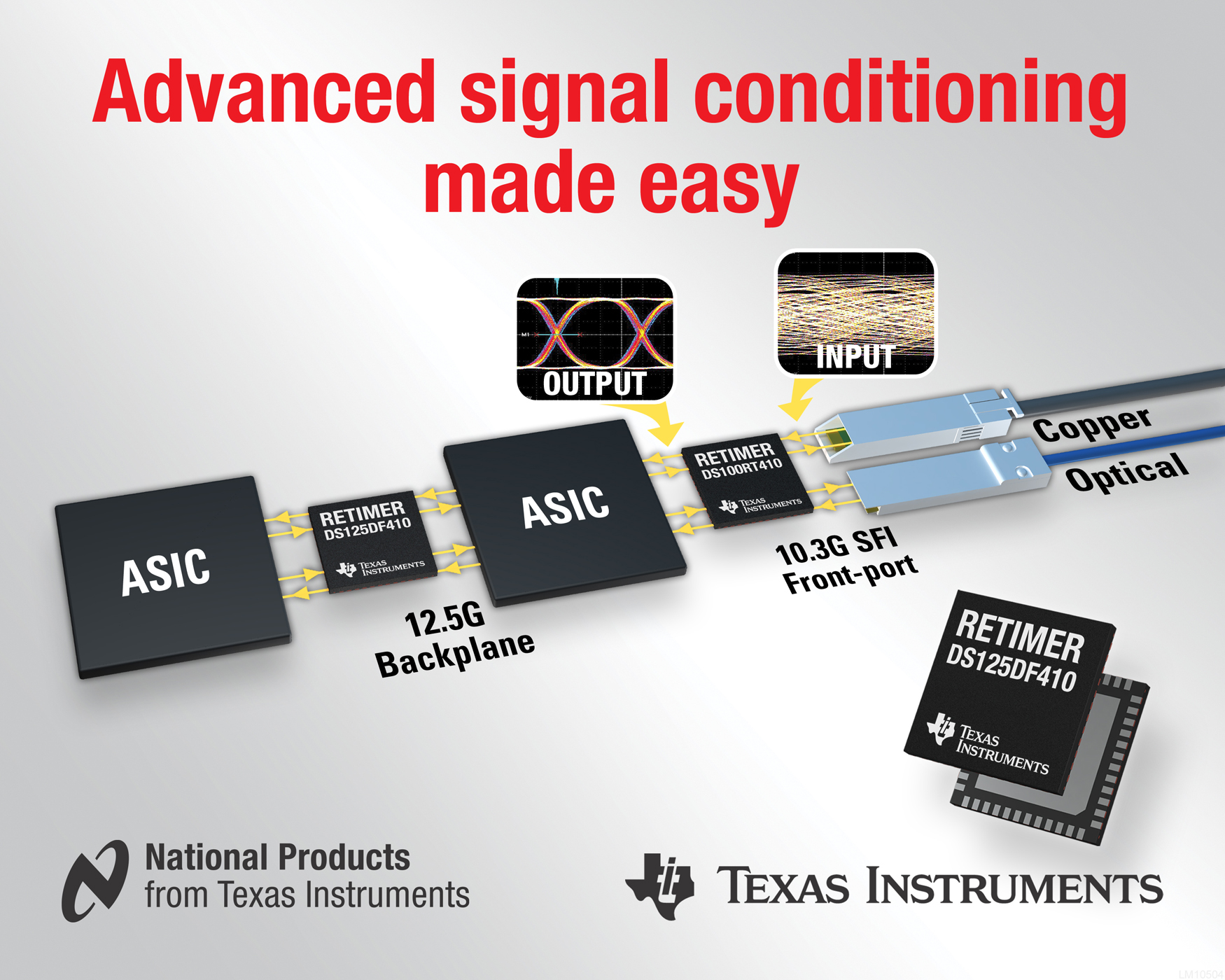TI同步提供 TLK10002 10G 多速率收發器、LMK03806 時脈生成器及單一轉換開關及溫度感測器等訊號調節器系列,以提供完整系統性支援。