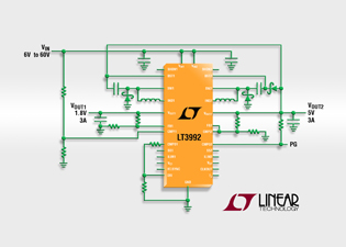 此元件的特殊設計技術可在寬廣輸入電壓範圍達到高效率,而該元件的電流模式架構提供快速瞬變響應和卓越的迴路穩定性。LT3992具備通道分頻器,使其能夠操作於其他通道頻率的1/2、1/4或1/8,提供高降壓比,同時將外部元件尺寸縮減至最小。更強化的短路保護和晶粒溫度監視器提供額外的保護。其它功能包括熱關斷和獨立的電源良好標示。