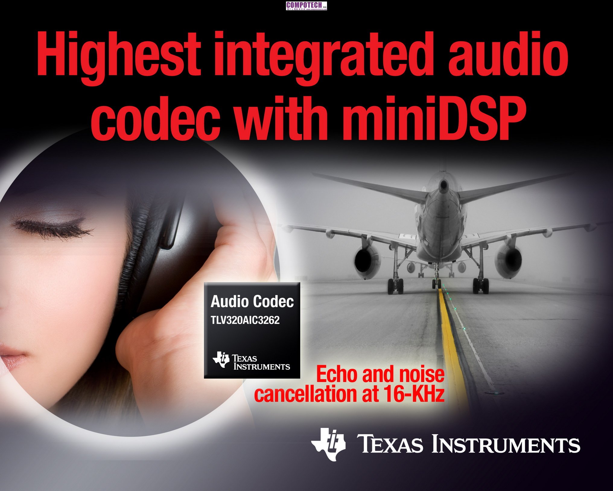 2012 年 4 月 26 日--德州儀器 (TI) 宣佈推出一款業界最高整合度且具嵌入式 miniDSP核心的音訊編解碼器 (audio codec),協助消除寬頻語音取樣速率高達 16 kHz應用的回音及雜訊。該 TLV320AIC3262 高度整合五顆放大器與兩顆 miniDSP 核心,可幫助設計人員同時連接多達三顆元件,如應用裝置、藍牙 (Bluetooth) 及基頻處理器 (baseband processor) 等。音訊及語音樣本可在編解碼器 (codec) 中無縫接收、混合與處理。包含TI 音訊語音演算法或其他廠商的演算法,皆可在編解碼器上運作,可為設計人員建立多功能高清晰度 (high-definition) 行動裝置音訊設計帶來極大優勢。