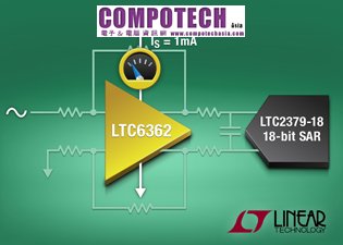 2012 年5月3日– 凌力爾特 (Linear Technology)日前發表低功耗全差動放大器LTC6362,可透過僅1mA供應電流驅動高精準16位元及18位元SAR ADC。該元件具備 200μV最大輸入補償電壓和3.9nV/√Hz輸入參考雜訊,使其非常適合精密工業和資料採集應用。